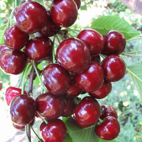 - Округлой, с узкой воронкой, формы, тёмно-красного цвета, просто отделяется от плодоножки. Мякоть сочная, умеренной плотности. Косточка яйцевидной, немного заострённой, формы, светло-коричневого цвета, легко извлекается из мякоти;