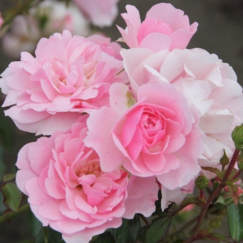 Нежные цветки розы Боника покоряют своей изящной красотой. В стадии бутона и при полном роспуске сохраняется нежно-розовая, бледная окраска, которая создает ощущение легкости и свежести. Каждый средний по размеру, диаметром около шести-семи сантиметров, махровый цветок является частью пышного соцветия. На одном стебле обычно раскрывается от трех до пяти таких бутонов, образуя многоцветковые кисти. Несмотря на визуальную пышность, аромат у этого сорта довольно слабый, ненавязчивый, что делает его идеальным для тех, кто предпочитает визуальную эстетику без сильного запаха. Листва дополняет образ: чисто-зеленые матовые листья служат прекрасным фоном для обильного цветения.